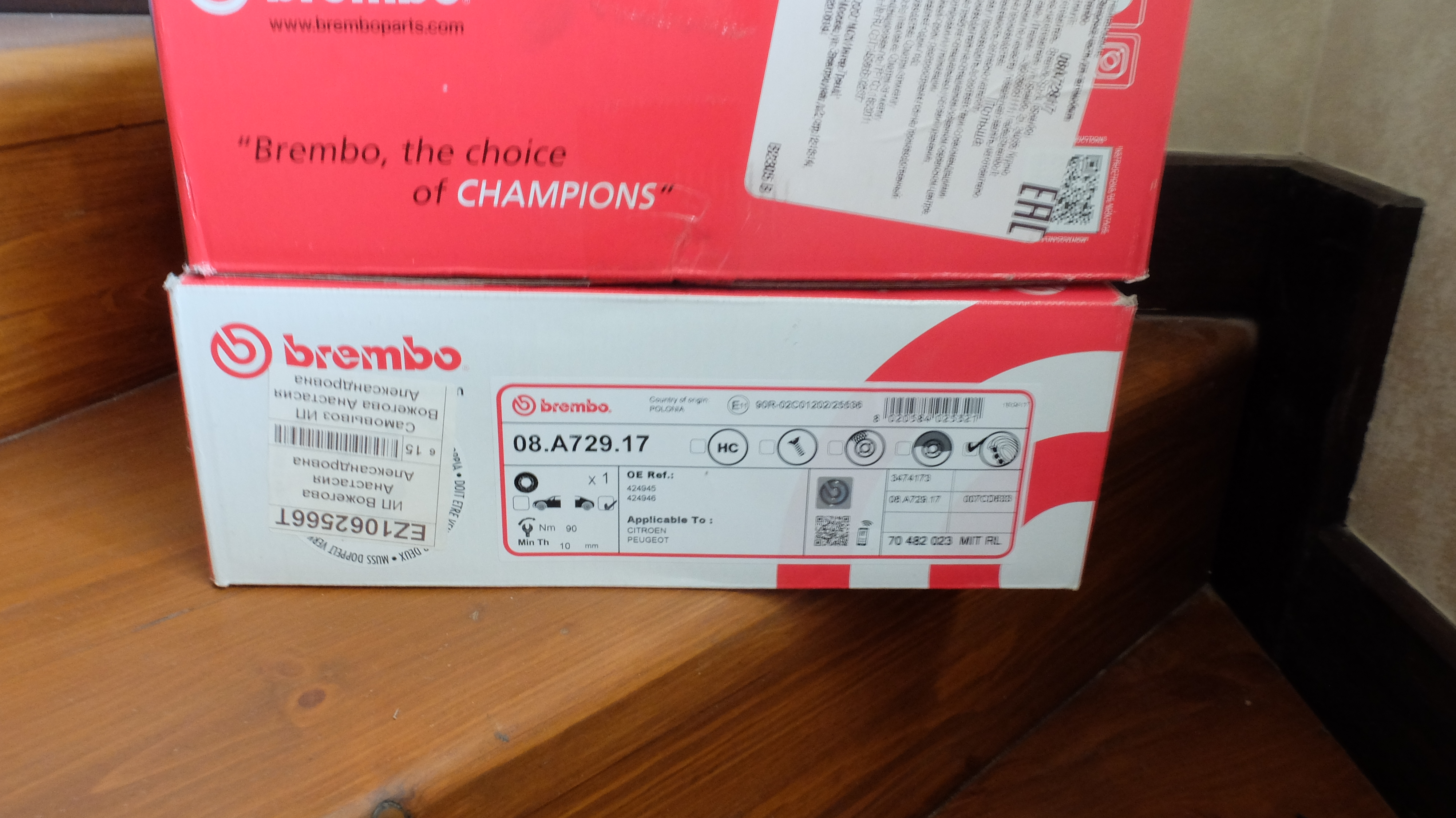 Новые задние тормоза Brembo артикула 08.A729.17. Описание и телефон на авито, цена 8000 рублей за оба.