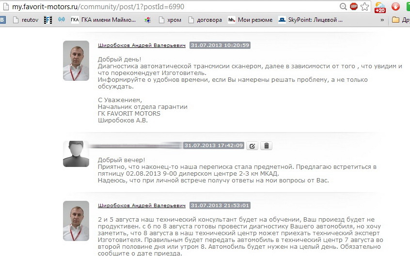 плюсану, пока бумагу не накатаешь - никто усом не шевельнёт.varer писал(а):С удовольствием бы помог тебе написать, пользуясь интернетом. 1. Пишем в начале претензию, их валом в интернете. 2. Нет реакции или тебя не устроил результат после ответа на претензию, пишем исковое заявление, а перед этим делаешь так тобой желаемую независимую экспертизу, причем не в любом сервисе, а в специальном экспертном бюро. Иначе суд не примет её и назначит свою экспертизу, а вот оплата за нее может тебе достаться бонусом, если проиграешь. Так, что подумай три раза. В Ростове, месяц назад выйграл парень суд, длился 1 год, между Гедон Авто - представитель Митсубиси, у него глючил новый Паджеро Спорт, жрал, глючил и т.д. Прошел он 2 экспертизы и год мучений, НО вернул себе стоимость машины ~2.4 миллиона и 1 миллион отступных за ущерб + судебные и что там еще от себя суд им дописал. Но у тебя машина гарантийная, правильно, указывай все причины в акте и жди результатов диагностики, а вот потом и пишем претензию. Сайт есть интересный ozpp, полистай или жалобу в роспотребнадзор (хорошая контора, недавно обращался к ним на МТС, приехали, и все стало хорошо), но у тебя пока нет бумажки о том, что ты жаловался на неисправность, а тебе сказали, что это норма. Ты так и не ответил, есть ли акты на руках о работах, где ты описывал неисправность?