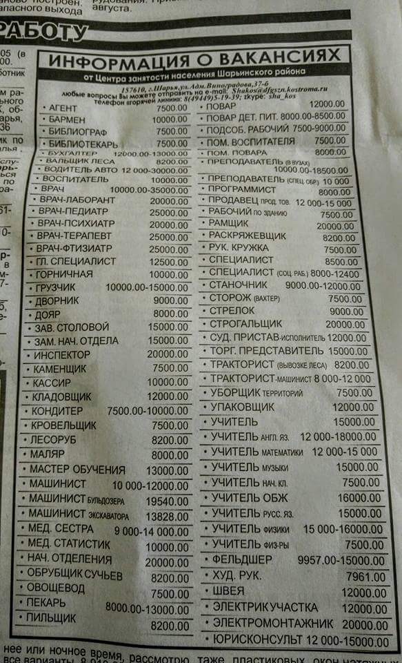 Ну что, встающие с колен, никто не позвонил по объявлению о вакансиях? Помогли б родной стране расправить плечи...за прожиточный минимум...PapiRus писал(а):Тут говорили что Россия встала с колен... Интересно с чьих колен. Знакомый приехал из Канады повидать родных, прислал вырезку из газеты с вакансиями. Для тех, кто "ну вы там держитесь" координаты приведены. Может кому то из ватничков пригодится, поедут поработать за прожиточный минимум...