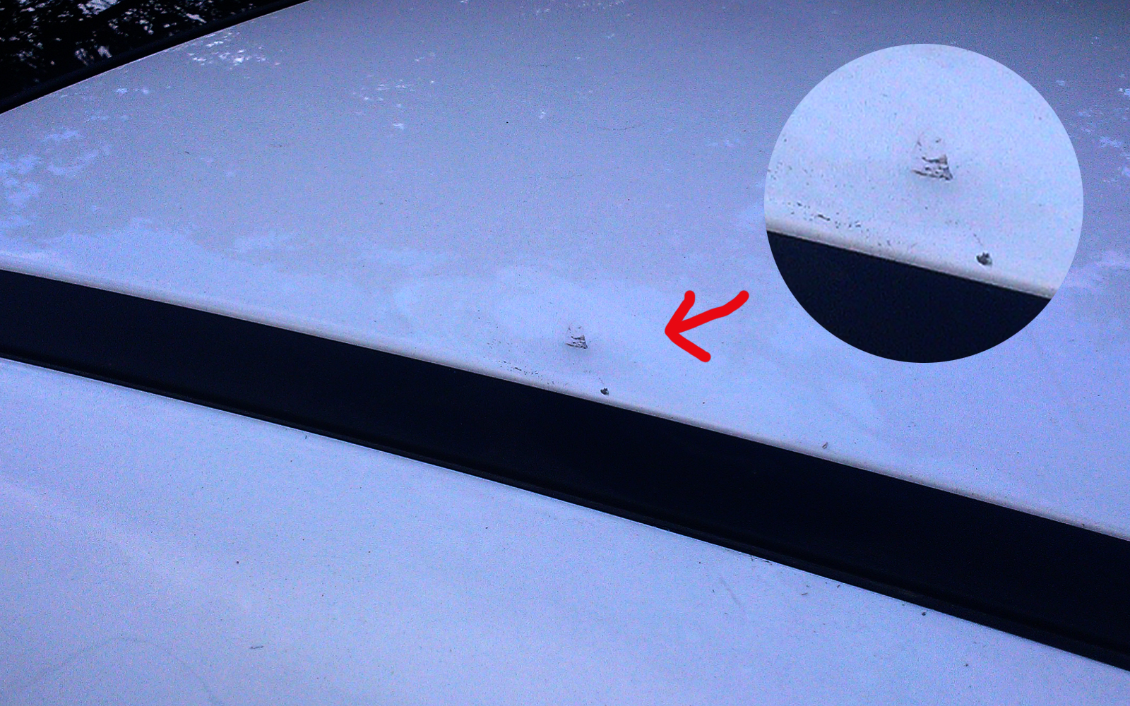 4. Вмятина на крыше. (Фото)