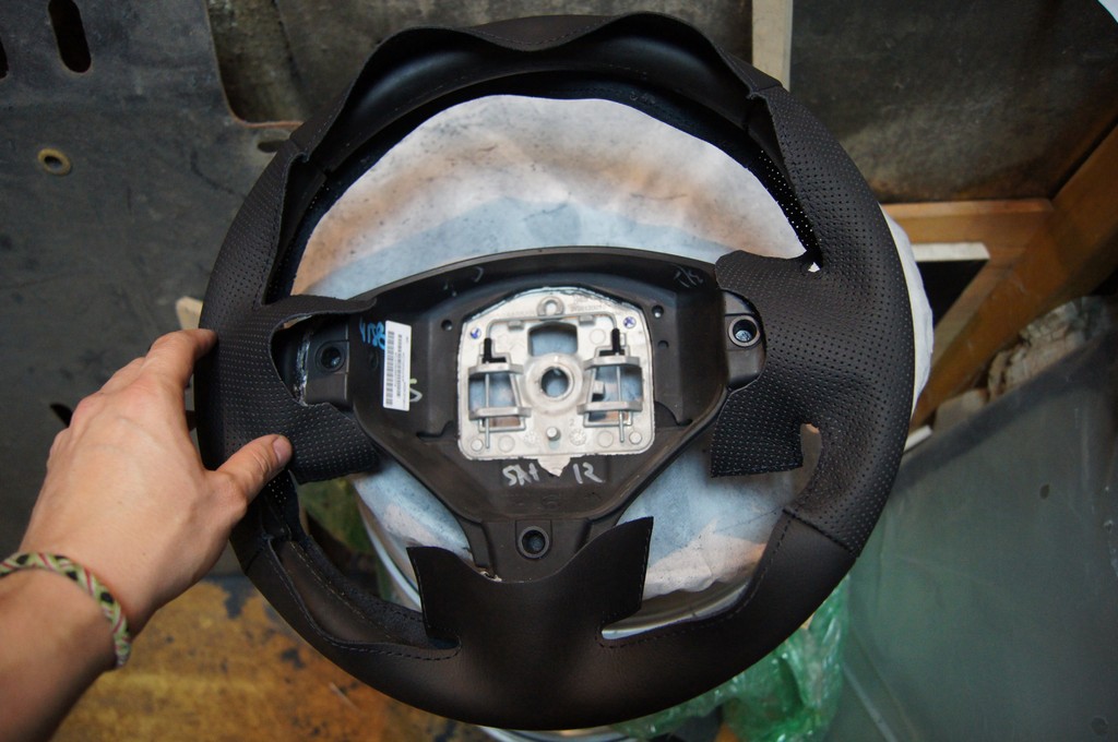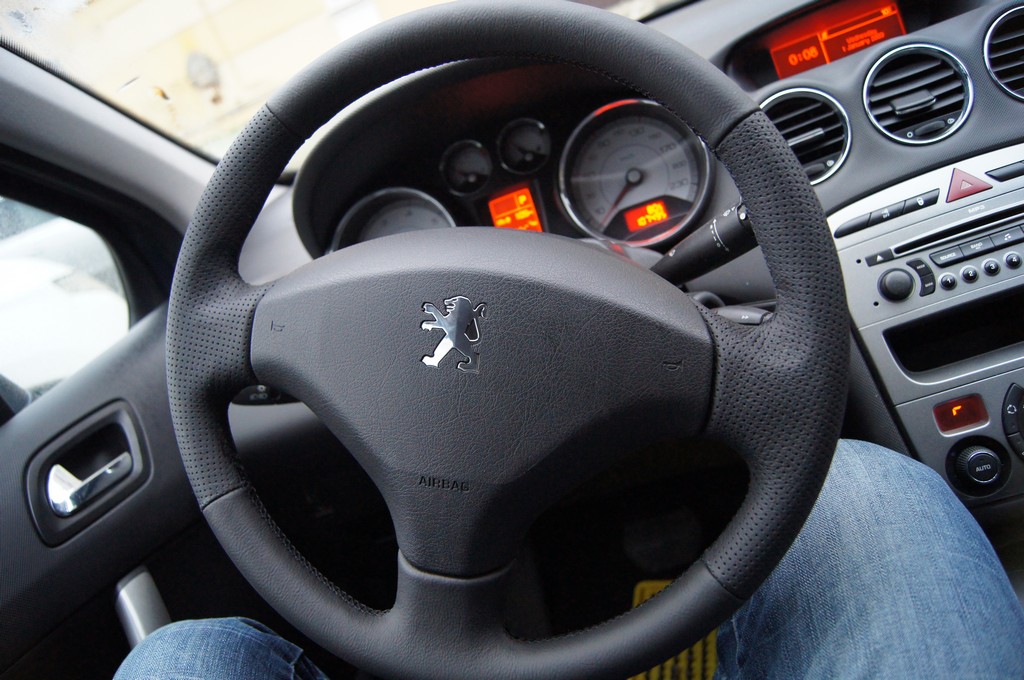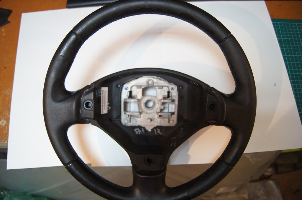 Вообщем такая история.Приятель купил себе Peugeot 308.Хорошая комплектация,да вот руль совсем стерся,кожа облезла.Подобрали кожу,сделали новую оплетку!Получилось СУПЕР.Если кому нить нужно,могу сшить и выслать.Установка не особо сложная,но требует времени и терпения!